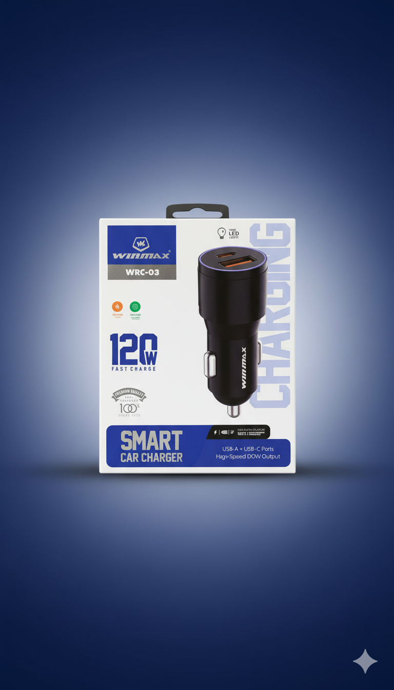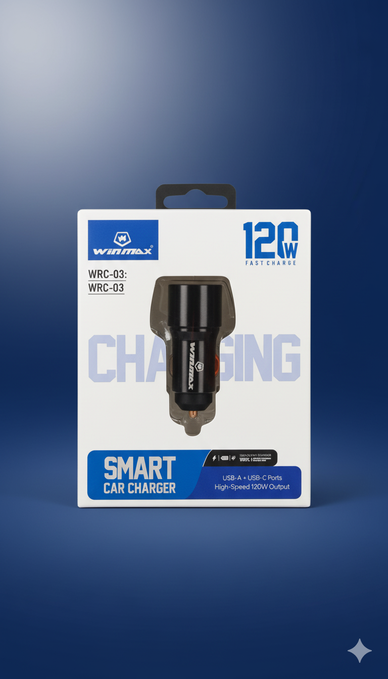 Charge Smarter. Drive Further. 120W Fast. The Winmax WRC-03 Smart Car Charger is engineered for speed and safety, delivering a massive 120W of total power to revitalize your devices in minutes. Never face a dead battery on the road again. This premium car charger is the essential upgrade for every modern vehicle.